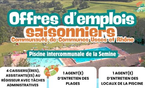 La Communauté de Communes Usses et Rhône recherche, pour la saison estivale à la piscine intercommunale de la Semine, des candidats pour les emplois suivants :