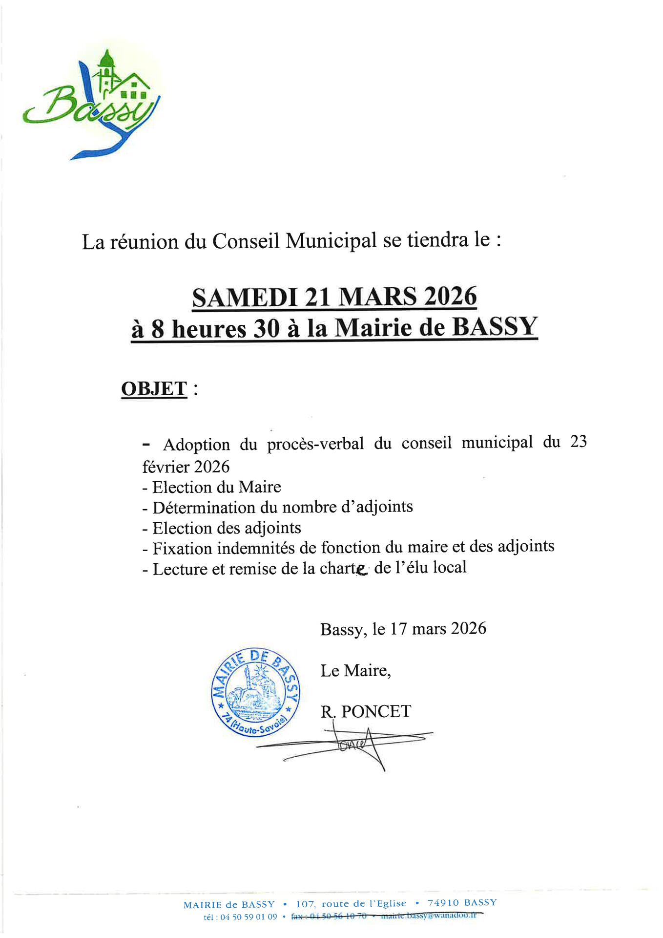 La prochaine réunion du Conseil municipal est fixée au samedi 21 mars à 08h30.