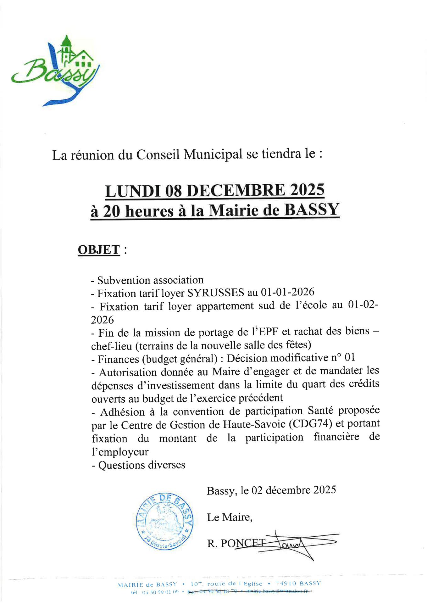 La prochaine réunion du Conseil municipal est fixée au lundi 8 décembre à 20h00.