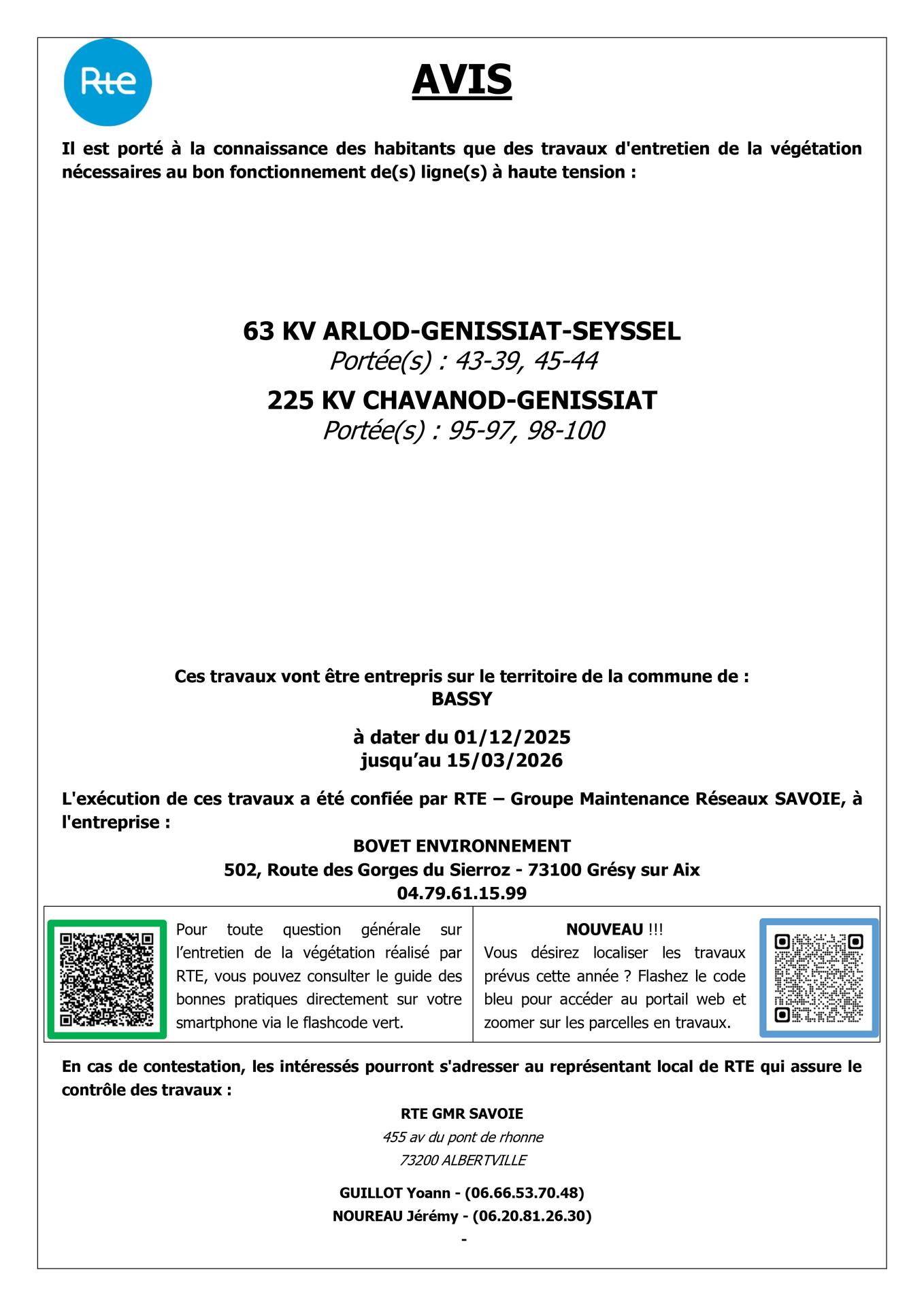 Des travaux d'élagage et d'abattage vont être entrepris sur Bassy par RTE, afin d'assurer le bon fonctionnement des lignes hautes tension et la sécurité des personnes aux abords de ces ouvrages.