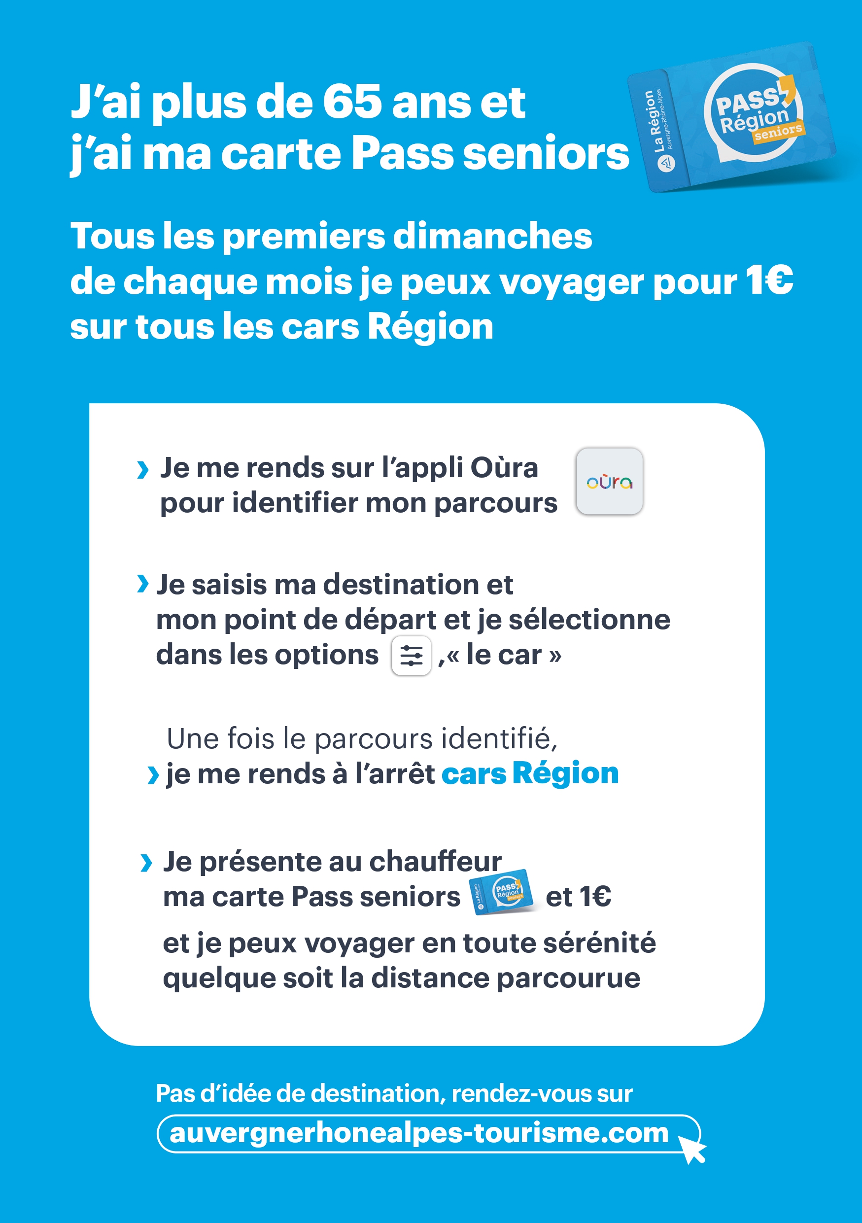 À partir du 1er février, tous les cars Région (hors lignes touristiques) accepteront la carte Pass Senior, disponible gratuitement auprès de la Région Auvergne-Rhône-Alpes.