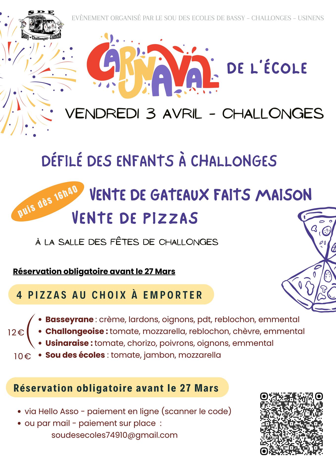 Carnaval des écoles et vente de pizzas le 3 avril