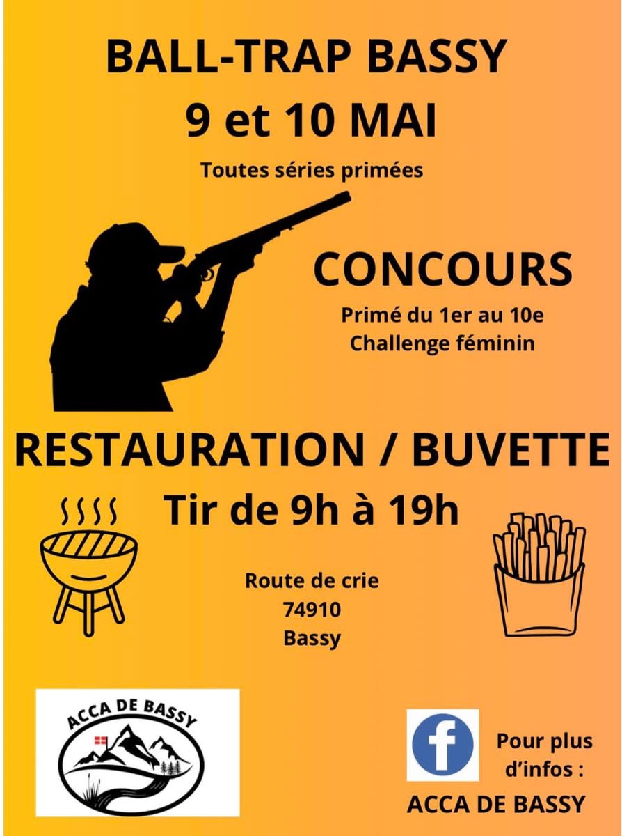 Un concours de ball-trap sera organisé à Bassy par l'ACCA les samedi 9 et dimanche 10 mai.
