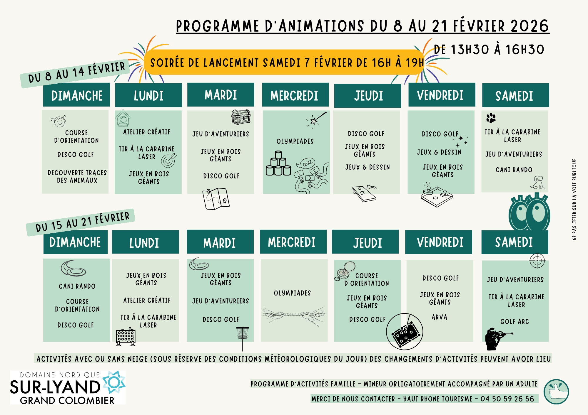 Programme des animations à Sur-Lyand pendant les vacances scolaires