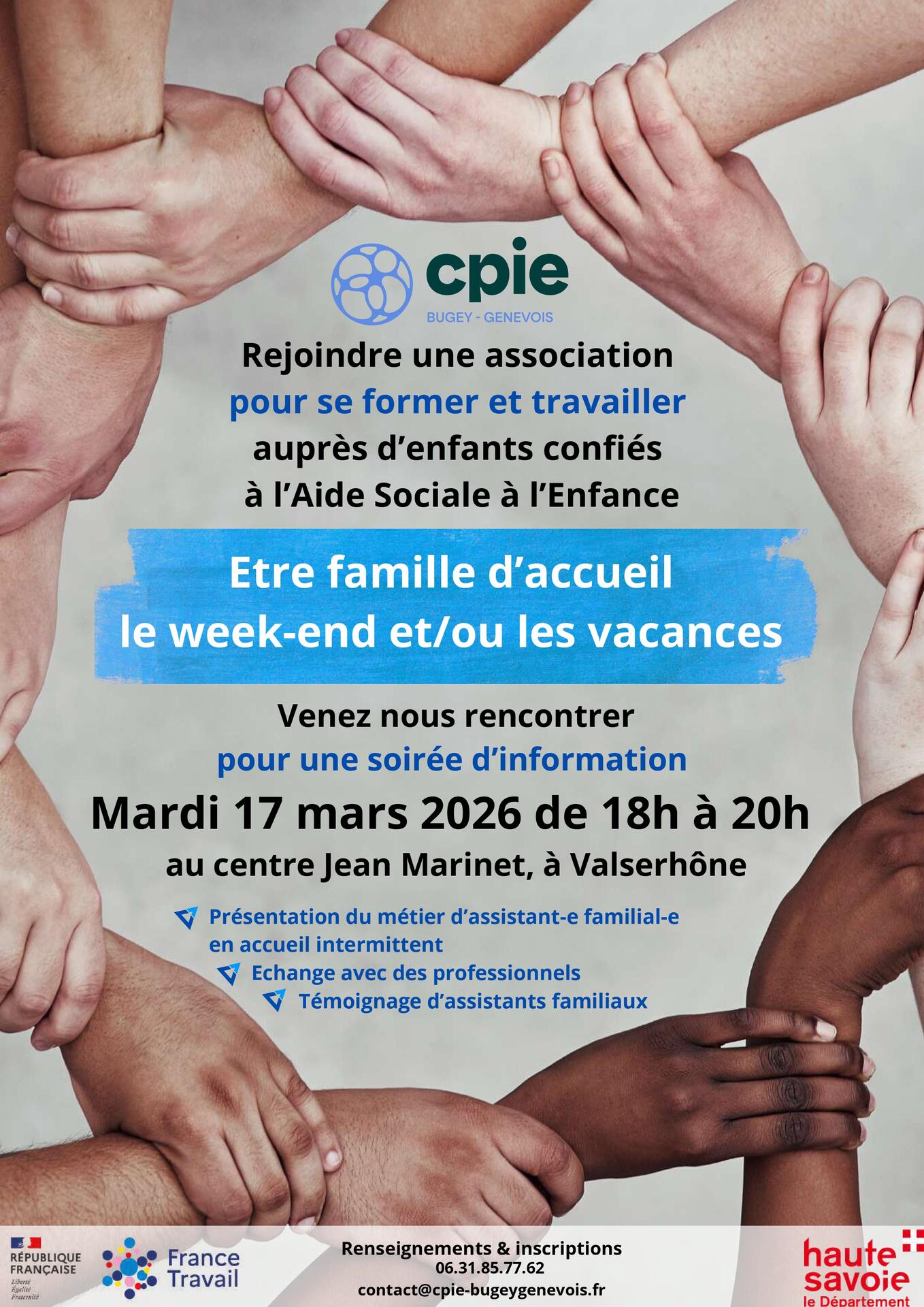 Soirée d’information – Assistants familiaux à Valserhône le 17 mars