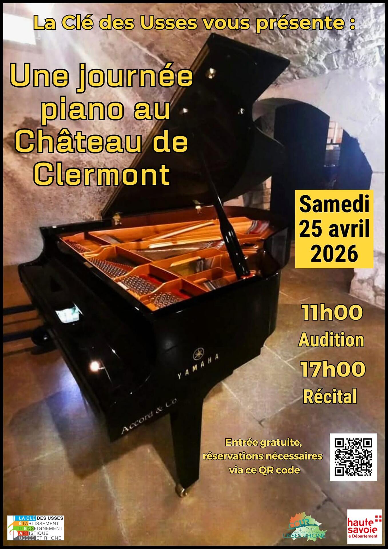 La Clé des Usses, établissement d'enseignement artistique Usses et Rhône, vous invite au récital de ses grands élèves le samedi 25 avril à 17h00 au château de Clermont.